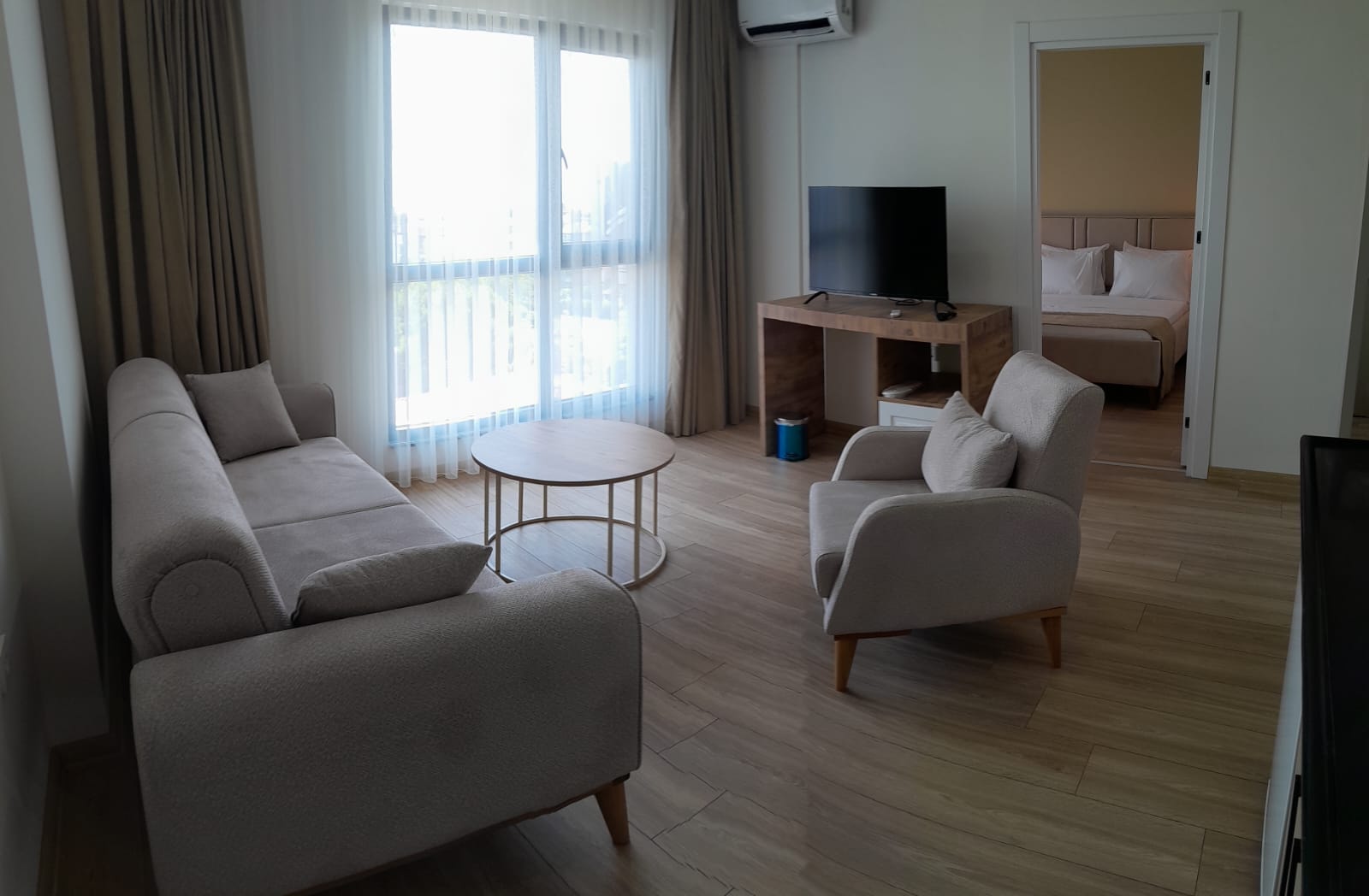 Odada parke döşeme - Isıtmalı zemin - Tekerlekli sandalye kullanımına uygun - Özel banyo - 55 inç LED TV